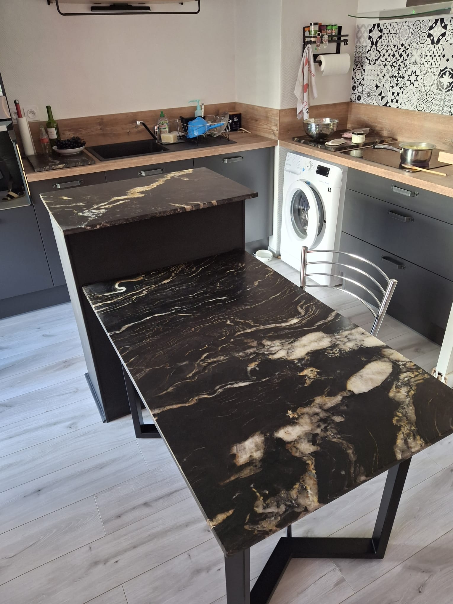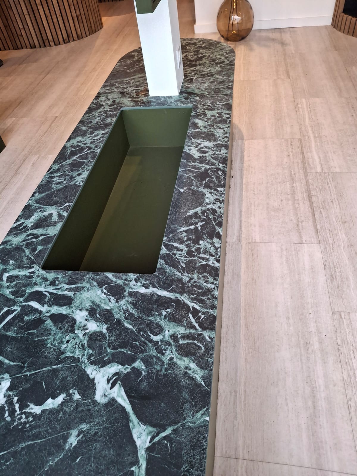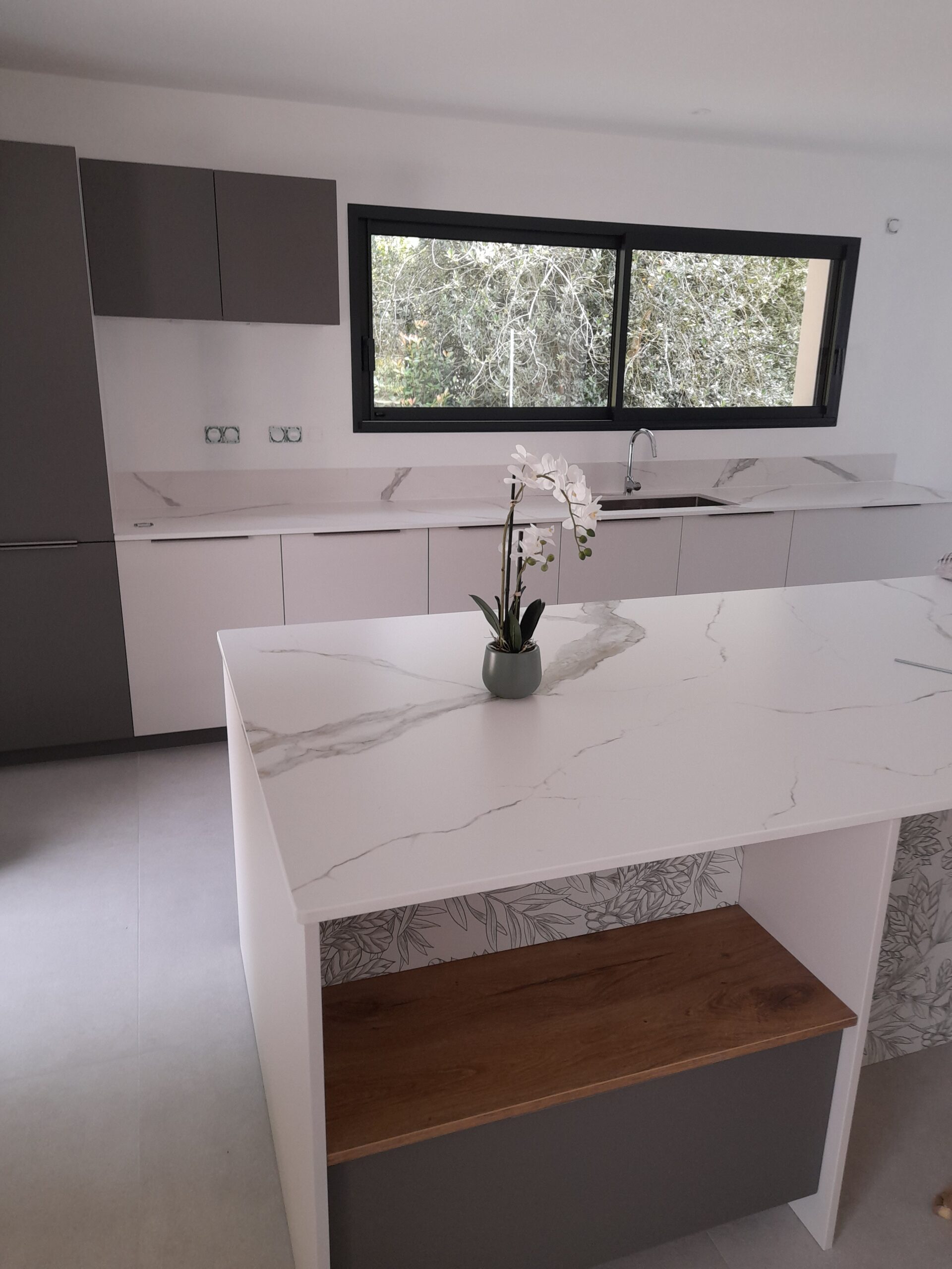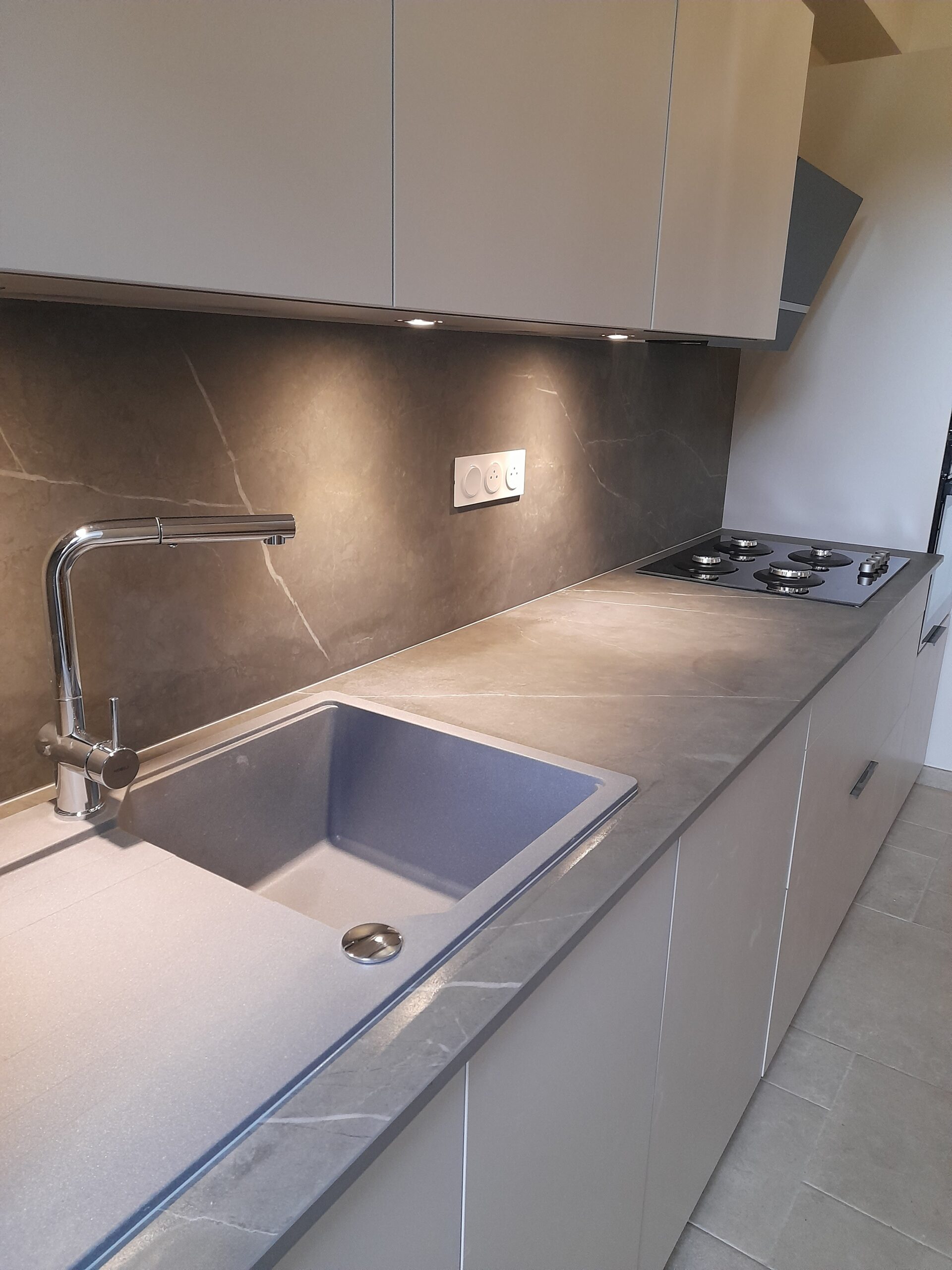 Bienvenue dans notre galerie, où vous découvrez des projets uniques réalisés sur mesure avec notre expertise en plans de travail et revêtements muraux en céramique fine.